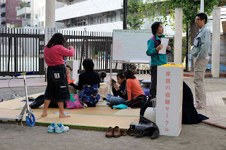 平日の田原公園での活動も3日目となり、準備のための畳運びにもみんなだんだん慣れて来ました。